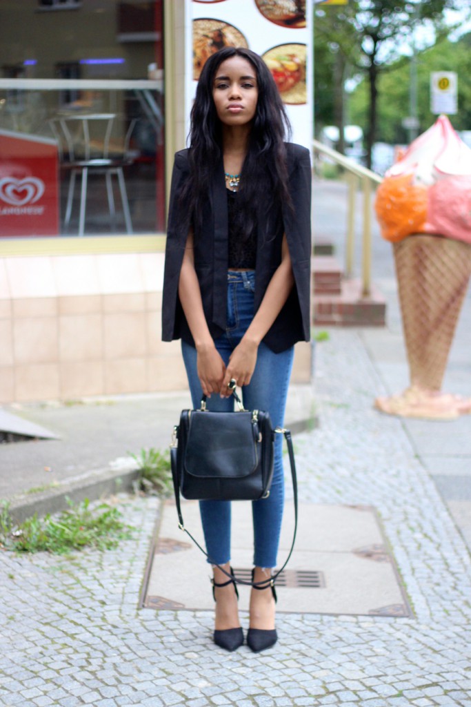 Das hier ist kein typischer Look von mir. Ich glaube ihr kennt mich. Sehr selten trage ich High Heels und Blazer. Aber auch ich erfinde mich jedes Mal neu und der Look gefällt mir sogar richtig gut. Ich bin noch mit den Schuhen ein bisschen wackelig auf den Beinen haha. Es ist ein Riesenunterschied wenn man immer Plateau/Boots trägt und plötzlich in Heels schlüpft. Ich mag aber das Gefühl wie man sich sofort viel weiblicher und eleganter fühlt. Schöne Abwechslung!